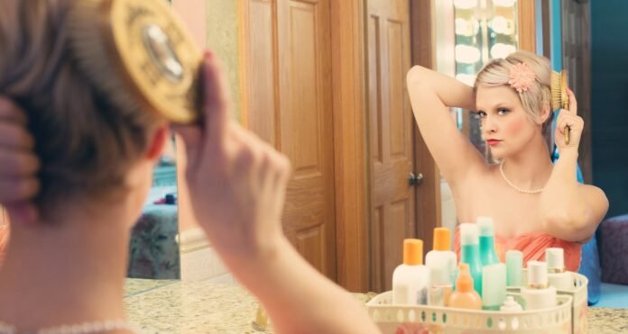 Cover up your roots. If you are in between trips to the hairdresser and your roots are showing cover them up with mascara. For lighter colored hair use a little extra hairspray and dust with a gold colored eyeshadow. This will cover up roots until you get your hair colored again.